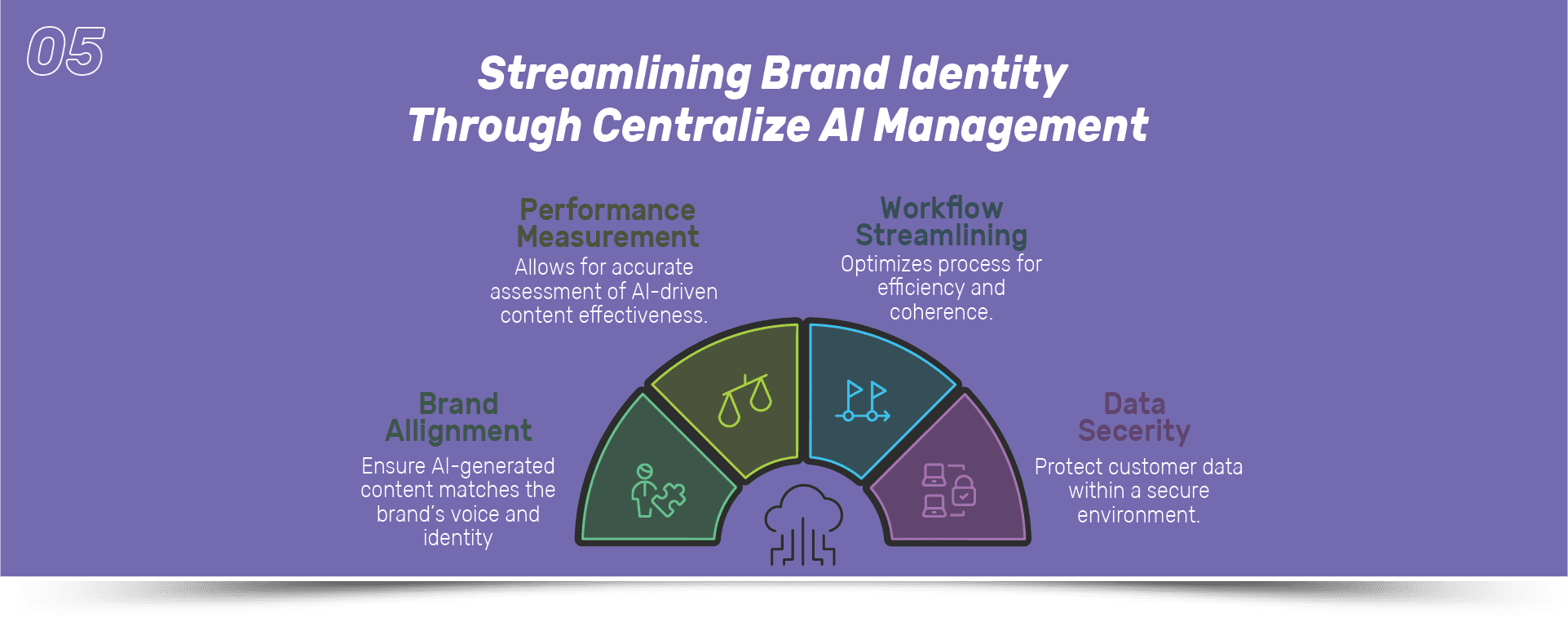 Keep track of all AI-generated content, guidelines, and customer data (ideally all in one platform). This ensures that every piece of AI-driven content aligns with your brand’s voice and that performance can be measured accurately. A centralized place tomanage your brand identity, creative outputs, and workflows acts asyour central command center, streamlining content, and safely housing customer data.